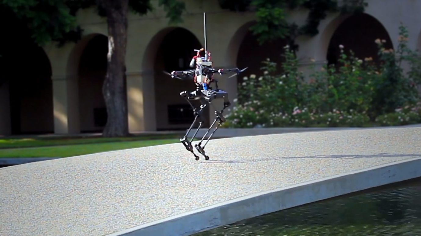 Это – относительно легкий шагающий робот, который держит равновесие, скорее, как дрон, чем двуногий робот. Попросту потому, что вместо рук у него пропеллеры дрона.