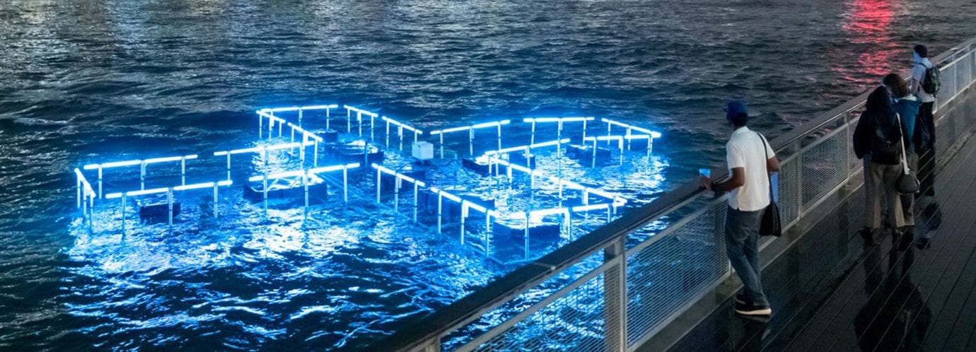 Новый проект компании Playlab, Inc покачивается на волнах Ист-Ривер, что в Нью-Йорке. Выглядит он как арт-инсталляция в форме креста с LED-подсветкой. Цвет подсветки напрямую указывает, можно ли в этой воде плавать, и если нет, то почему.