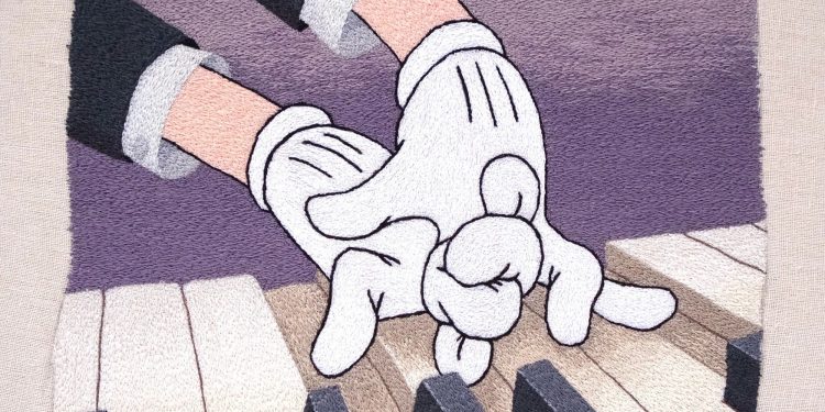 У творчості митця Пітера Фредеріксена вишивані руки з молотками наочно демонструють темний бік і тривожні теми мультфільмів.