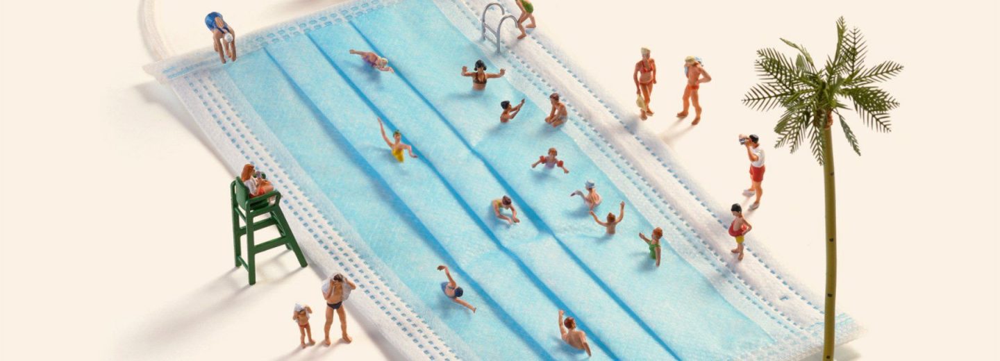 Втім, останнім часом у творчості Танаки з’явилася ще одна тема – карантин, соціальне дистанціювання та все, що з цим пов’язане. Тому минулого місяця у Інстаграмі креатора з’явилися мініатюрні пейзажі з масок та фігурок для діорам. На них цей символ пандемії перетворювався на басейн, морські хвилі чи волейбольну сітку. Ще в інших сценаріях можна побачити, як туалетний папір стає паровозом або схилом гори, а хлібне ліжко та щітка-душ нагадують нам про те, якою важливою частиною життя стала атмосфера наших домівок.