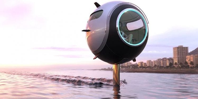 На воді цей новий витвір дизайнера тримається завдяки висувним підводним крилам, які кріпляться до нижньої частини сфери. Центр ваги такого транспорту розташований низько у зануреній під воду частині, оскільки акумулятори його вбудовані саме у підводні крила. На воді ця сфера-всюдихід розвиває швидкість до 55 км/год, а управляється вона з розташованої по центру консолі.