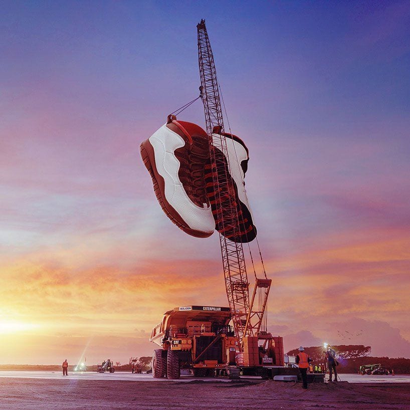 Збільшене до велетенських розмірів зображення кожного такого кросівка від Nike художник розміщує на своїх фотографіях. Після чого він редагує колаж так, щоб остаточне зображення виглядало абсолютно реалістично. Для цього Варела ретельно коригує кольорову гаму та освітлення.