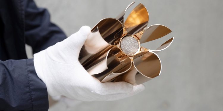 Цей Олімпійський вогонь живиться воднем, а не викопним паливом, як це було раніше.