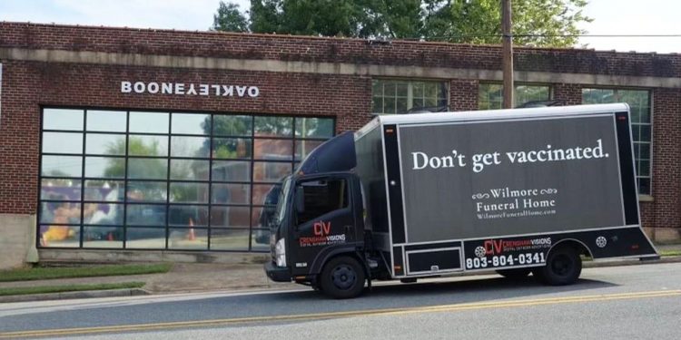 У минулі вихідні вулицями міста Шарлотта, що в штаті Північна Кароліна, курсував зловісний чорний катафалк. А напис на цьому катафалку дуже влучно передавав, чим ризикують ті, хто відмовляються від вакцинації.