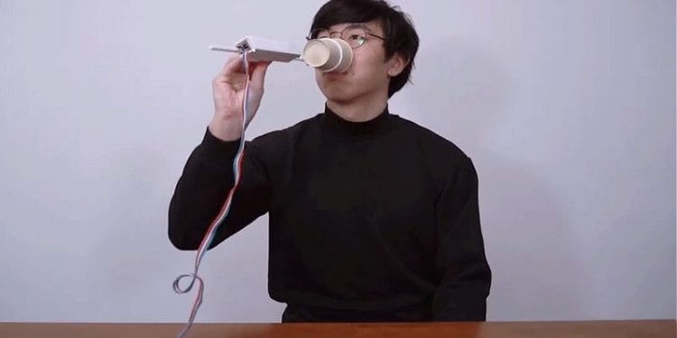В результаті він створив дійсно чудернацьку конструкцію. В ній підставка під стаканчик (щоб сам стаканчик з міркувань гігієни можна було міняти) розміщується на механізмі з тягарцем. Цей тягарець ковзає, змінюючи центр ваги стаканчика, щоразу, коли людина підносить стаканчик разом з усією цією конструкцією до рота. Коли тягарець ковзає до людини, стаканчик видається в руці важчим. А коли від людини – легшим.