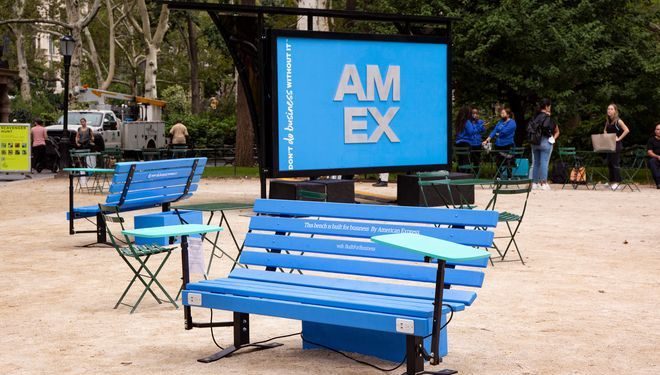 American Express перетворює на робочі станції білборди та лавки в рамках нової кампанії, присвяченої кредитним карткам для підприємців.