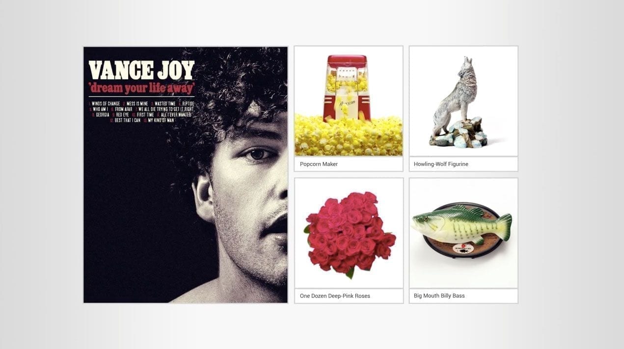 На платформі eBay shoppable-контент набув формату п’яти музичних кліпів. Кожну річ, яка згадувалася в тексті пісень, можна було купити на сайті. Коли користувач клацав на те, що йому до вподоби, він переходив у пошукову форму eBay. Так цій платформі вдалося додати трохи колориту та емоцій до взаємодії зі споживачами, що не завадить будь-якому сайту, який спеціалізується на електронній комерції.