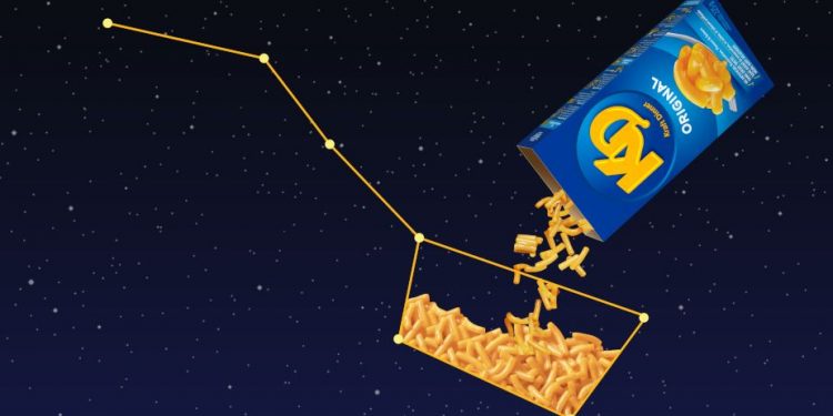 Тому Kraft Dinner і вирішив виправити цю ситуацію, перетворивши цей порожній «небесний посуд» на Kraft Dipper. У партнерстві з Міжнародним реєстром зірок бренд зареєстрував неофіційні назви для 21 зірки, які у нічному небі розташовані начебто у цьому Великому Ковші, пойменувавши їх на честь макаронів із сиром та всього, що їх стосується. Як-от Масло, Ложка, Виделка, Лікоть, Купа-макаронів-що-злиплися-разом тощо. А також Молоко 1, 2 та 3,25. Зрештою, Молочний Шлях заслуговує на трохи більше молока.