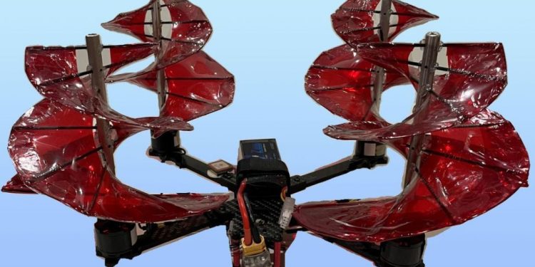 Цей дрон має чотири штопороподібних пластикових крила, але замість того, щоб крутити їх вручну, як свого часу запропонував да Вінчі, вони приводяться у рух батареями та електричними двигунами. Як це властиво сучасним дронам, така конструкція може нахилятися в той чи інший бік, змінюючи швидкість обертання відповідних пропелерів. Такий літальний апарат формує на краю кожного крила спрямований вниз вихор повітря, який створює висхідну тягу.