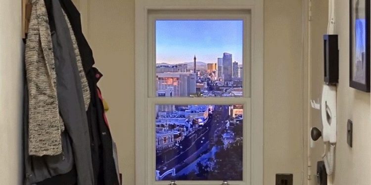 Біля вікна на стіні висить мапа, на якій LED-лампочками позначено різні міста (Лас-Вегас, Амстердам тощо). В кожному із цих міст є камери, які цілодобово ведуть трансляцію. І краєвиди у вікні-екрані перемикаються не з ноутбука чи спеціального пульта, а пересуванням літачка-магніту на мапі між підсвіченими на ній містами.