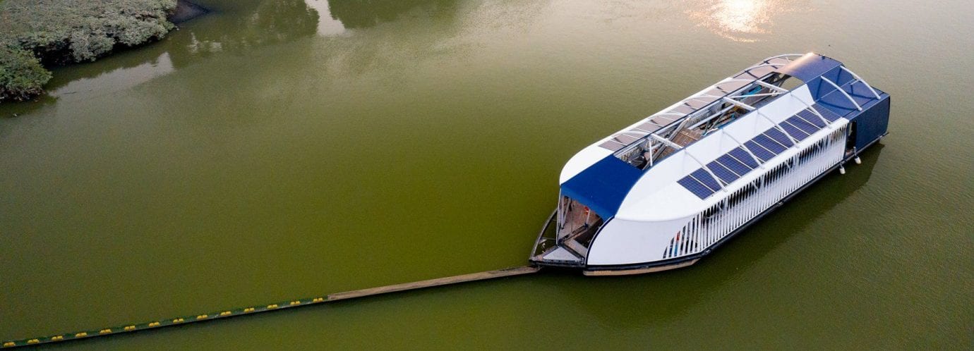 Голландский изобретатель Боян Слат и организация Ocean Cleanup ранее уже участвовали в зачистках большого тихоокеанского мусорного пятна. А теперь они создали еще и баржу на солнечных батареях, которая дрейфует по реке и вылавливает из нее пластик, прежде чем тот достигнет океана.