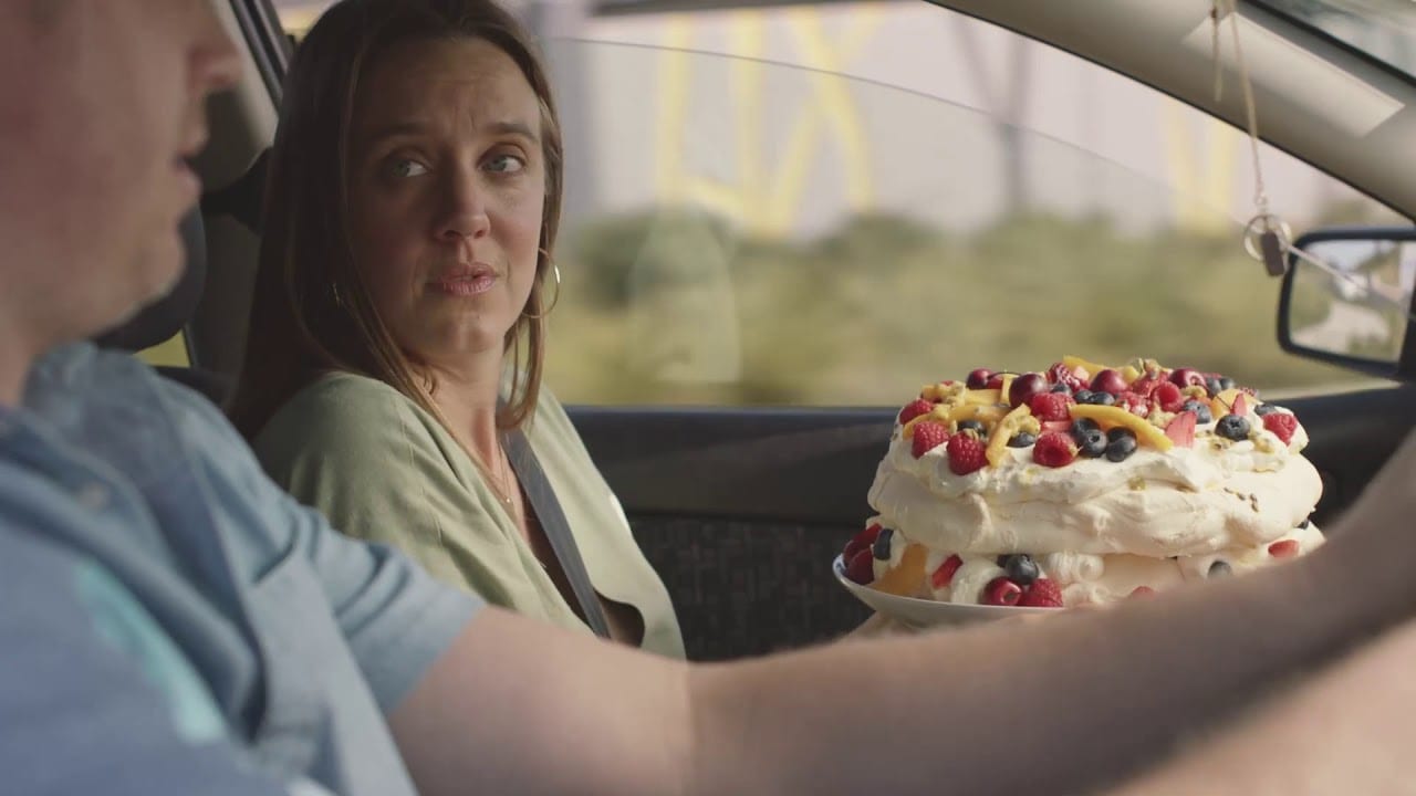 Ролик показывает семью, которая в Рождество бережно везет гордость и окрасу стола – торт-безе – к дому бабушки, где собирается вся семья. Этот сценарий знаком многим: мы осторожно и медленно ведем машину, чтобы довезти в целости и сохранности какую-то сущую мелочь – торт, вазон, коробку с едой на вынос. Вместо того чтобы включать осторожность на максимум, когда с нами в машине едут дети. Вот они – приоритеты!