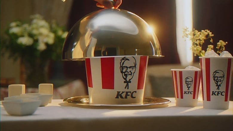 Іконічні кольори бренду червоний та білий, відерця і розвішані усюди портрети полковника Сандерса. Дизайн ряду предметів був розроблений мережею спеціально з цієї нагоди (хоча це не перший раз, коли цей бренд фастфуду виходить за рамки власне їжі). Логотип KFC можна побачити на халатах, подушках, простирадлах, милі, свічках, капцях (ні, не тих, що з куркою) і, звісно, на презервативах. Доповнює цю пропозицію ексклюзивне меню на двох, також безкоштовне.