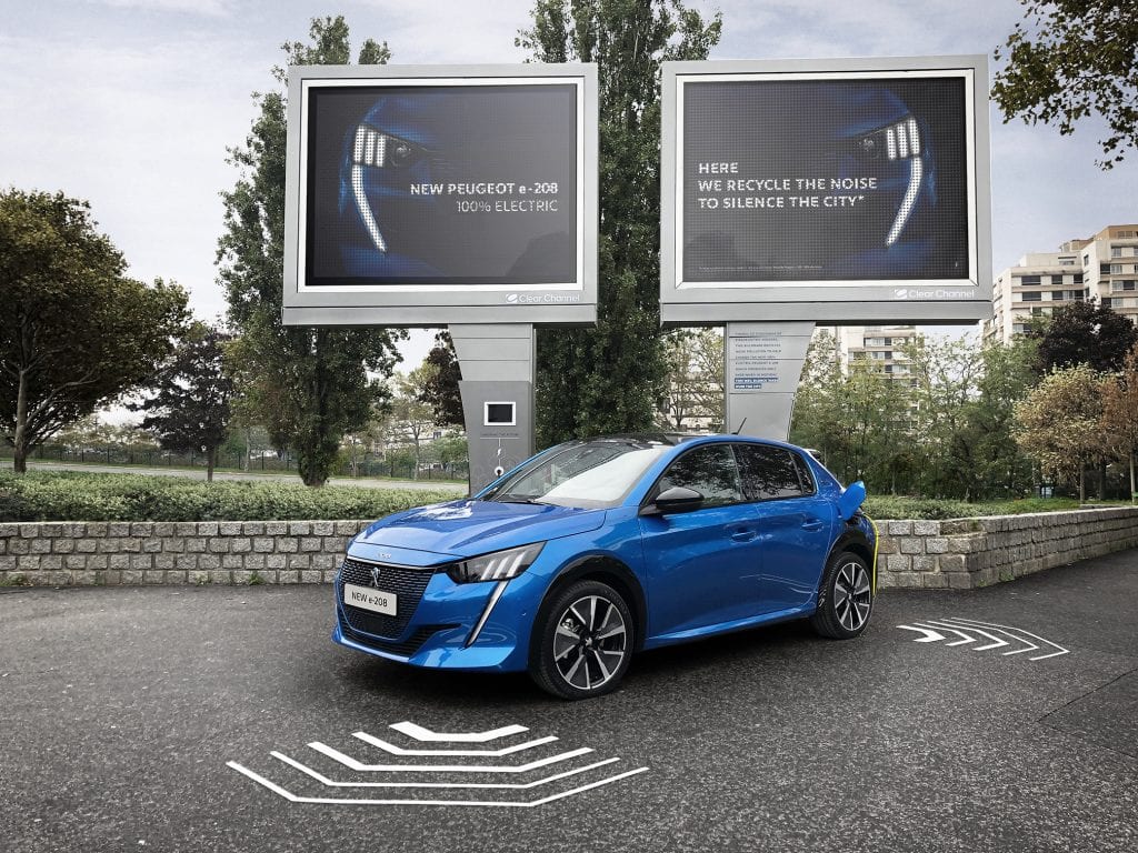 Компания PEUGEOT и агентство BETC разработали первый бигборд, состоящий из тысяч акустических сенсоров с пьезоэлектрическими свойствами. Этот бигборд может заряжать электромобили, используя шумовое загрязнение. Устройство поглощает вибрации, вызываемые гулом больших городов, и вот эти-то акустические волны и идут на подзарядку новой полностью электрической модели e-208.